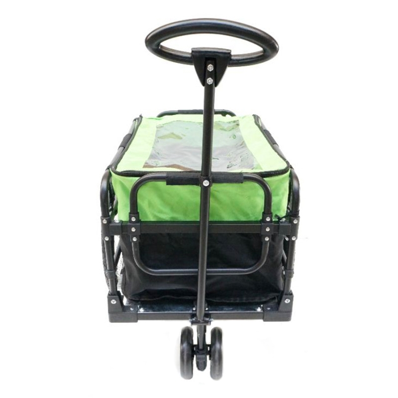 La remorque peut être accrochée à la roue arrière de votre vélo à l’aide de l’attache et du bras inclus. Elle peut aussi aisément se transformer en chariot en utilisant le kit piéton avec roue pivotante à 360° inclus.