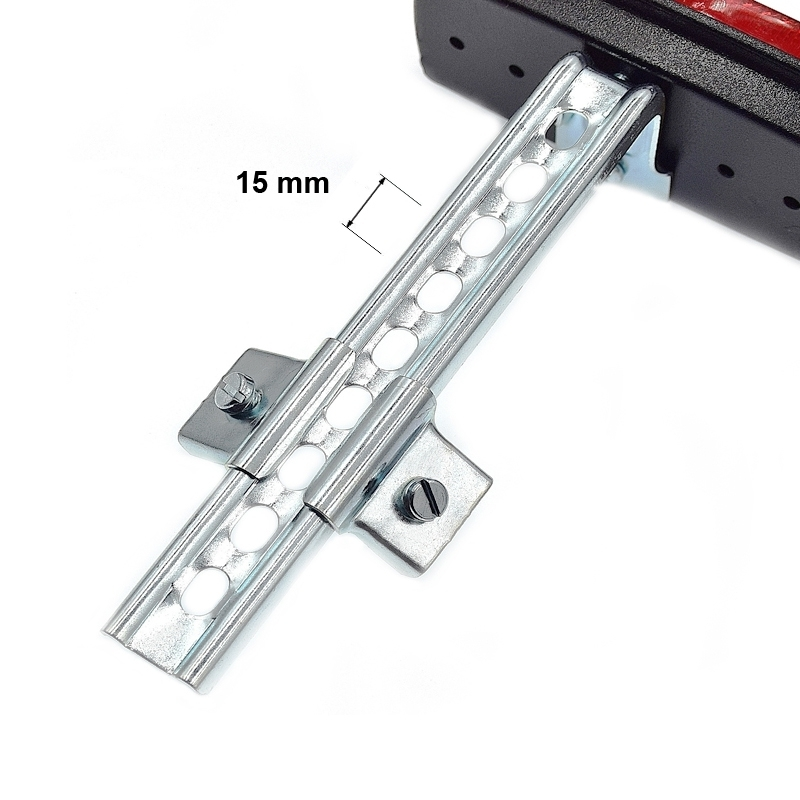 Le montage peut être réalisé également sans avoir recours aux pattes puisque le la barre est pourvu de 9 trous espacés tous les 15 mm qui peuvent servir pour le montage à l’aide de boulons, vis et écrous en option.