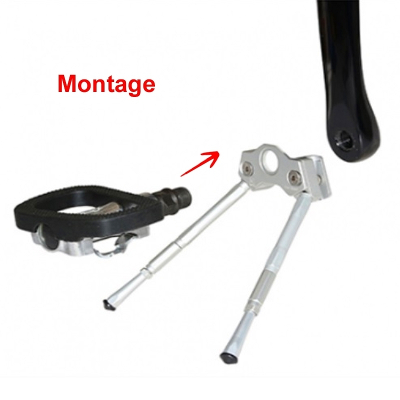 Béquille double pied pour fixation sur pédale de bicyclette