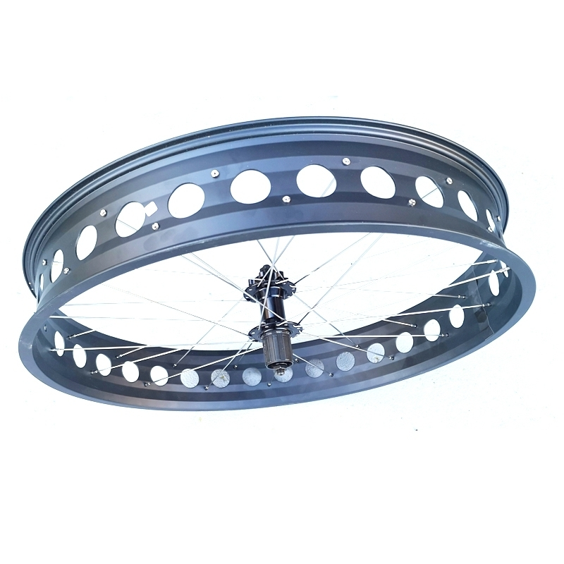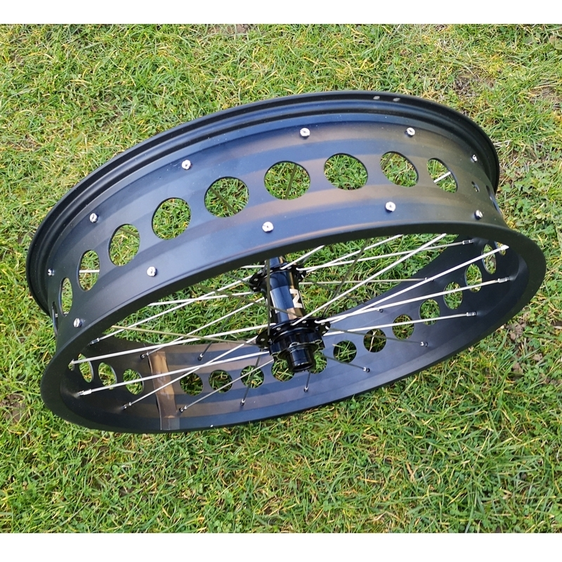 Fabriqué en aluminiun avec rayons en inox et moyeu supportant un frein à disque à 6 trous.