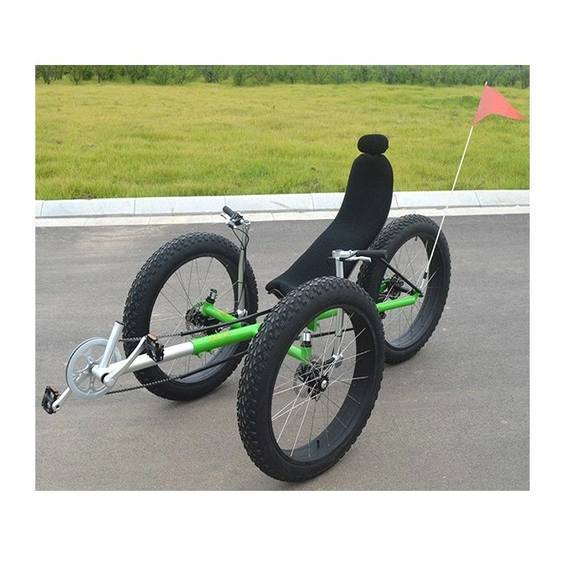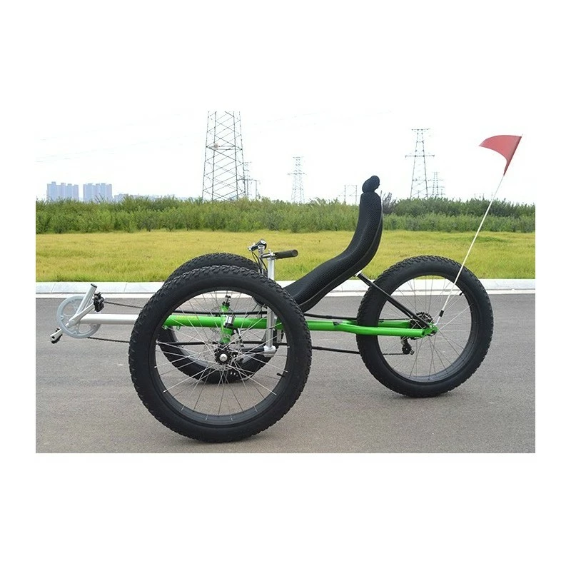 N’aillez plus peur des chocs, des terrains scabreux et des dénivelés boueux. Avec ces gros pneus (26″ de diamètre et 120 mm de large) ce fat trike couché vous emmènera sur tout type de terrain et vous permettra de franchir d’obstacles, que ça soit sur la terre, la boue, le sable, la neige,..