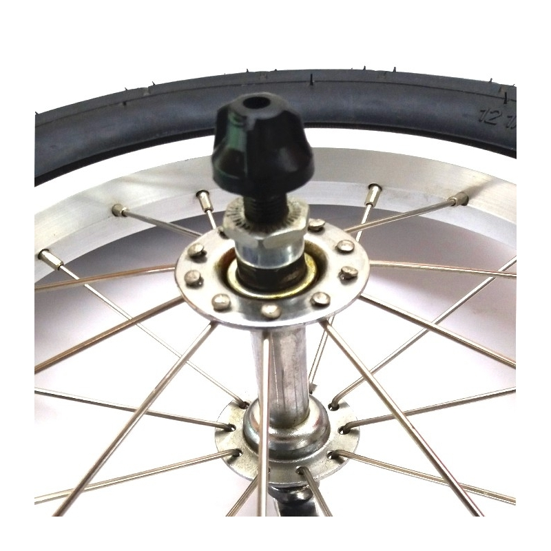 Cette roue est conçu pour être monté à l’avant sur certains modèles de remorques vélo enfant équipés d’un bras démontable afin de transformer la remorque en poussette.