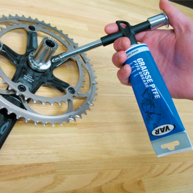 Nous vous invitons dans un premier temps à bien dégraisser et nettoyer le cycle avant d’appliquer de la graisse sur les des différents éléments comme le tube de graisse PTFE.