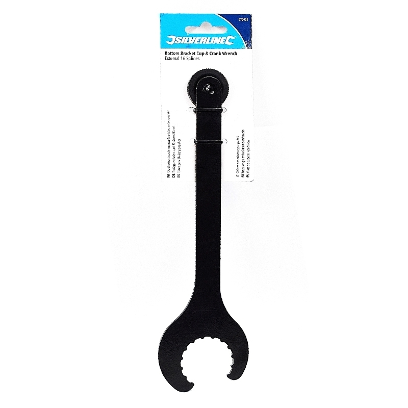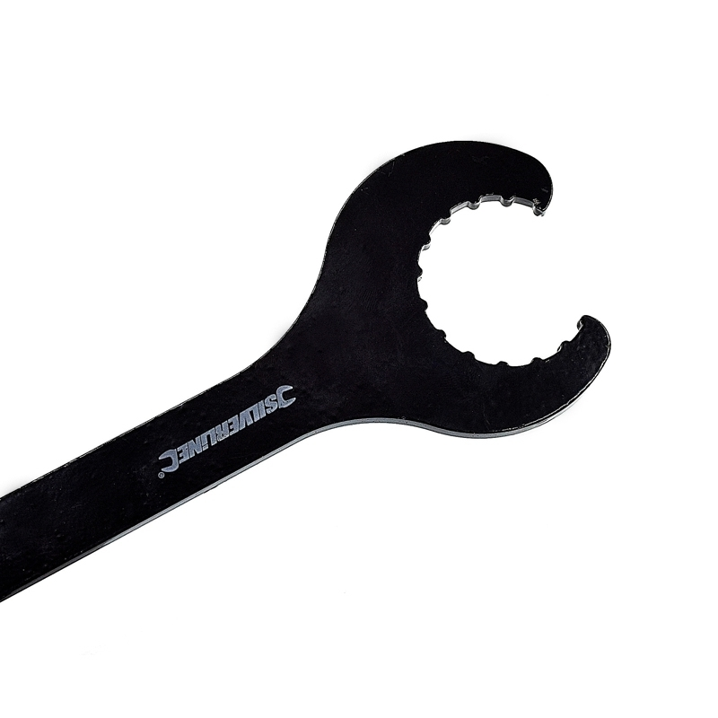 Clé en acier traité à chaud spécialement conçue pour le retrait et la pose de boîtiers de pédalier. Peint par poudrage pour résister à la corrosion. Convient aux pédaliers à roulements externes à 16 cannelures type Shimano Hollowtech II.
