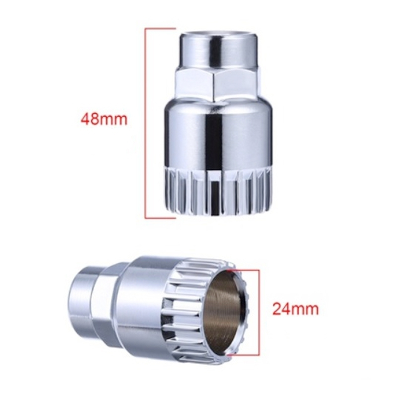 Cette douille peut être maintenu par une clé à molette ou utiliser avec une clé de 24 mm ou clé à cliquet 1/2″ . Pour braquet « sealed » Shimano et Shimano ISIS.