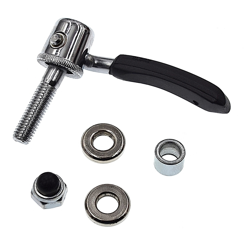 L’ensemble est constitué d’une vis à blocage rapide, de 2 rondelles en inox, 1 axe et d’un boulon aveugle (voir photos).